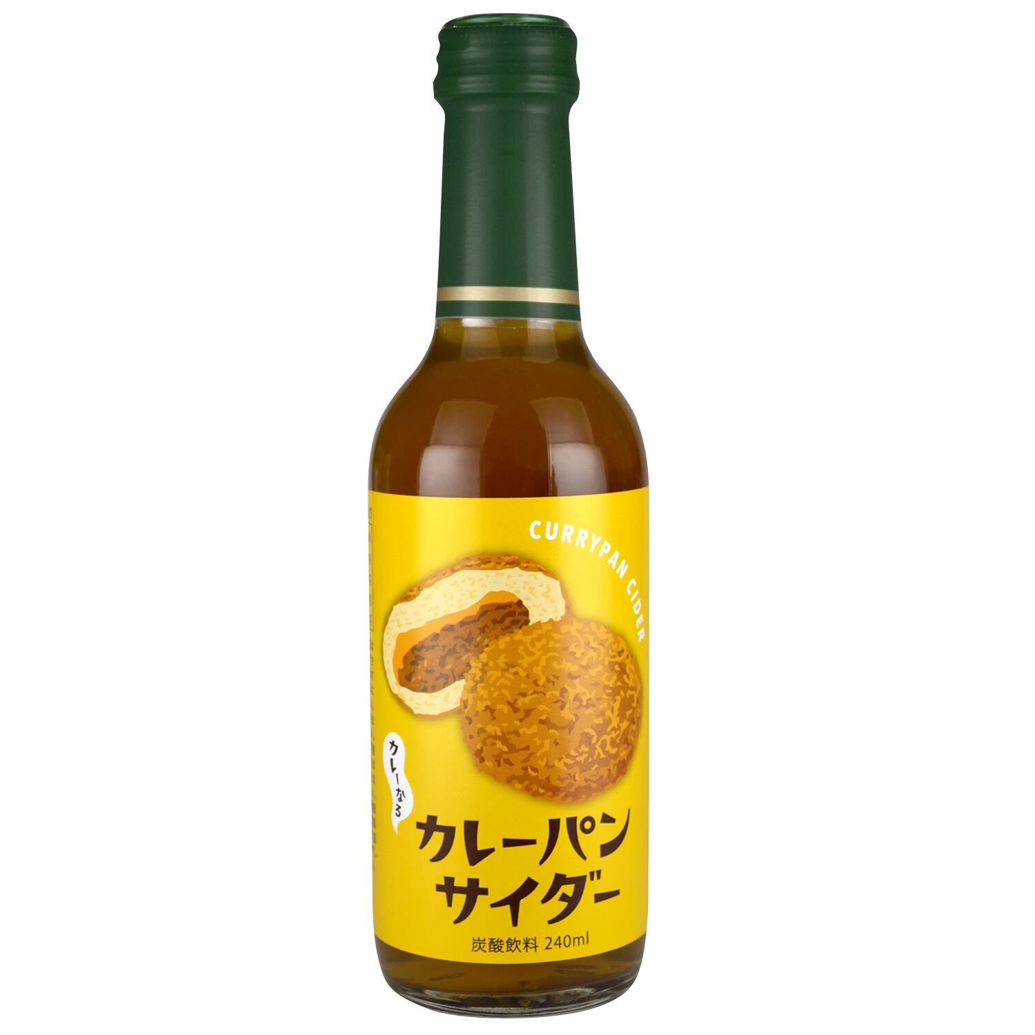 炭酸の爽快な喉越し、スパイスが香るカレーパン風味のサイダー。